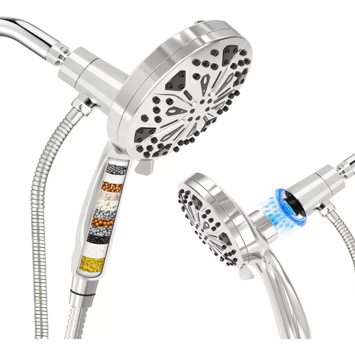 La ducha de mano OMMO está equipada con un sistema avanzado de filtración de 10 capas que elimina impurezas como cloro y sedimentos. Este diseño protege tu piel y cabello, brindándote una experiencia de ducha más saludable y refrescante.